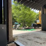 新車購入に伴い、既存アルミシャッターの高さと、タイルコンクリートの門柱の高さを上げないとガレージ内に入れないとのことで、タイルコンクリの削りを敢行し、車の出入り可能に致しました。